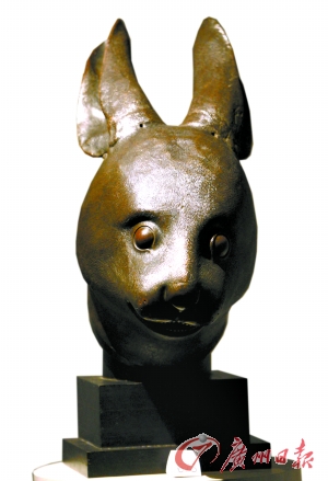2月21日在巴黎大皇宮預(yù)展中的兔首銅像(圖片來源:廣州日報)
