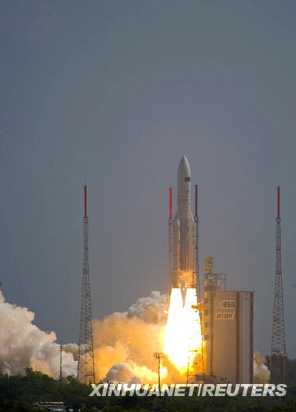 新華網(wǎng)巴黎5月14日電(記者 李學(xué)梅)格林尼治時(shí)間14日13時(shí)12分(北京時(shí)間14日21時(shí)12分)歐洲阿麗亞娜5-ECA型火箭攜帶歐航局世界最大遠(yuǎn)紅外線望遠(yuǎn)鏡“赫歇爾”及宇宙輻射探測器“普朗克”,從法屬圭亞那庫魯航天中心發(fā)射升空。