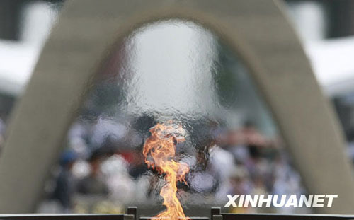 8月5日,在日本廣島和平紀(jì)念公園,人們?cè)谟啦幌绲暮推街鹎捌矶\。日本是迄今世界上唯一一個(gè)遭受過原子彈轟炸的國家。新華社記者任正來攝
