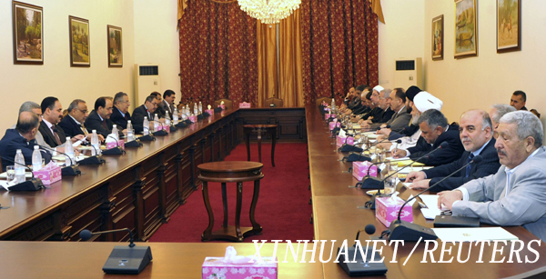 10月25日,伊拉克總統(tǒng)塔拉巴尼(左六)在首都巴格達主持召開安全會議。巴格達市中心25日遭到連環(huán)自殺式汽車炸彈襲擊,已造成大量人員死傷。新華社/路透