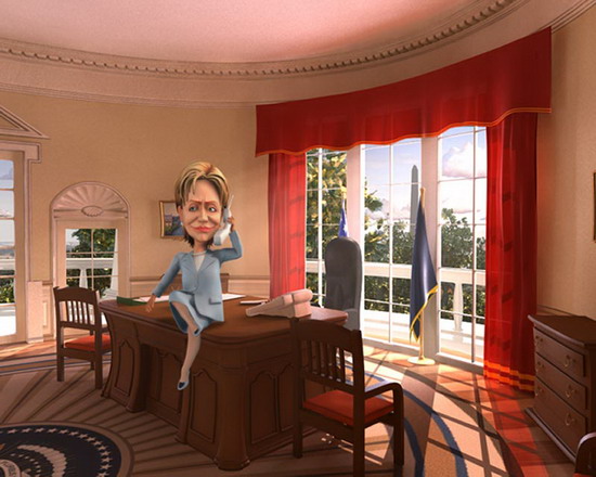 這段卡通片名為《動畫人性》(Cartoon Personalities),是于15日在俄羅斯國家電視臺第一頻道播出的。這段動畫生動地展現了多位政治人物和明星的形象。片中,美國國務卿希拉里·克林頓一身天藍色套裝打扮,和平日里的著裝非常相似。不過希拉里卻是坐在白宮橢圓形辦公室的桌子上,一邊翹著二郎腿一邊打電話,面部表情還很嚴肅。