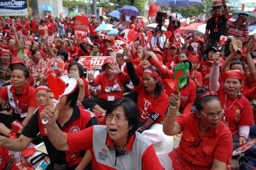當(dāng)時在總理府前的示威民眾只剩下幾千人,但今年在拉差巴頌路口的“紅衫軍”,根據(jù)警方第一天推估至少有三萬人。納塔武表示,“紅衫軍”至少會留在那里到4月20日以后,聽聽選舉委員會如何對執(zhí)政的民主黨解散案做出決定。