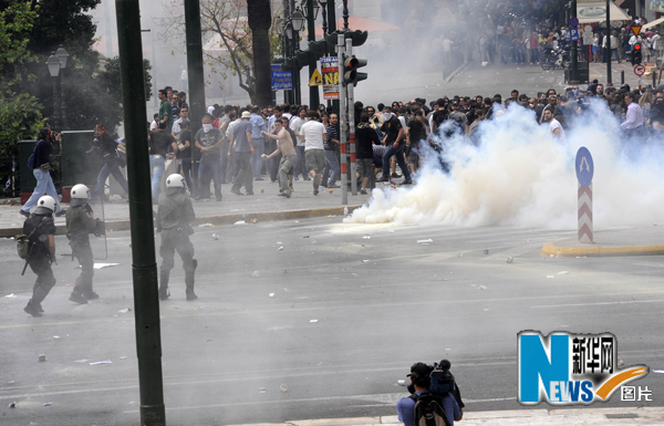 大約10萬希臘民眾5日走上街頭,抗議政府的緊縮政策。這是今年以來最大規模的一次抗議活動。一些無政府主義者與警方發生沖突,他們向警察投擲燃燒瓶,同時將燃燒瓶投向路邊的建筑物、汽車和垃圾桶。警察則施放催淚彈予以還擊,雅典市中心一片混亂。