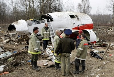 救援人員抵達(dá)波蘭總統(tǒng)專機(jī)墜毀現(xiàn)場。 資料圖