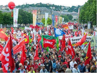 俄紐帶網(wǎng)6月13日?qǐng)?bào)道,抗議者打出的標(biāo)語(yǔ)稱“我們不會(huì)為你們的危機(jī)買(mǎi)單”,“從雅典到柏林,買(mǎi)單的應(yīng)該是銀行和公司”等。抗議者不滿國(guó)政府6月7日通過(guò)的法案將大量縮減國(guó)家開(kāi)支,2012年就要縮減112億歐元預(yù)算。德反對(duì)派和工會(huì)指責(zé)政府企圖通過(guò)貧困階層來(lái)解決經(jīng)濟(jì)問(wèn)題。德ARD電視臺(tái)一項(xiàng)調(diào)查顯示,79%的受訪者不贊同此法案。