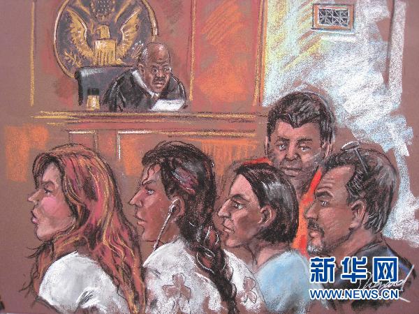 資料圖片:這張6月28日的畫像顯示的是美國紐約方面對被逮捕的俄羅斯間諜嫌疑人的庭審情況。美國司法部當日宣布,聯(lián)邦調查局日前破獲了一個在美國為俄羅斯情報部門招募人員并收集情報的間諜網(wǎng)絡,截至目前已有10名嫌疑人被捕,另有一人在逃。 新華社/法新