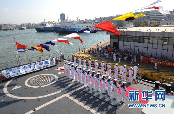 8月9日,中國海軍護航編隊中的“廣州”艦抵達希臘的比雷埃夫斯港。新華社記者劉春暉攝