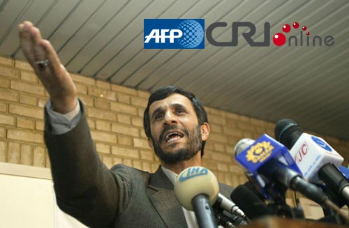 伊朗總統(tǒng)內(nèi)賈德在發(fā)言。圖片來(lái)源:(AFP/國(guó)際在線)