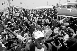 1月30日,蘇丹南部民眾在朱巴慶祝公投初步計票結(jié)果公布。