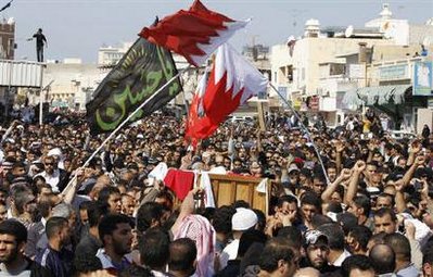 數(shù)千名示威者占據(jù)了首都麥納麥市中心,在市中心珍珠廣場宿營的人數(shù)也在不斷增加。此前發(fā)生的沖突曾導致兩人死亡,數(shù)十人受傷。安全部隊隨后撤退,以緩解緊張局勢。
