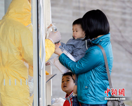 日本首相菅直人周一(14日)表示,在大地震和海嘯中受損的核電站仍然處于“警戒”狀態(tài)。東京電力公司周一向政府報告說,福島第一核電站輻射程度再次超過法定劑量。福島縣第一核電站在地震發(fā)生后已經(jīng)關(guān)閉,但是因反應(yīng)堆冷卻系統(tǒng)發(fā)生故障導致輻射超標。圖為在福島縣二本松,民眾隔離接受輻射檢測。