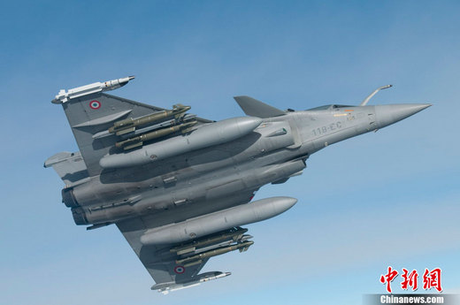 當地時間3月19日,一架法國陣風戰機攻擊利比亞期間接近一架空中加油機進行加油作業。