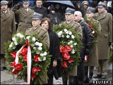 據英國廣播公司報道,波蘭10日在前總統卡欽斯基專機墜毀一周年之際舉行儀式,哀悼遇難的卡欽斯基和其他95名死者。