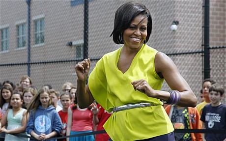 據外媒報道,米歇爾·奧巴馬5月2日在華盛頓一個中學宣傳關于控制少兒肥胖的活動時,和著歌手碧昂斯的歌曲在學生面前秀了段舞蹈。