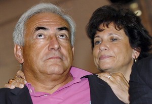 資料圖:國際貨幣基金組織(IMF)總裁斯特勞斯—卡恩(左)與妻子