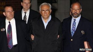 斯特勞斯—卡恩(右二)提審,簡稱自己是清白的