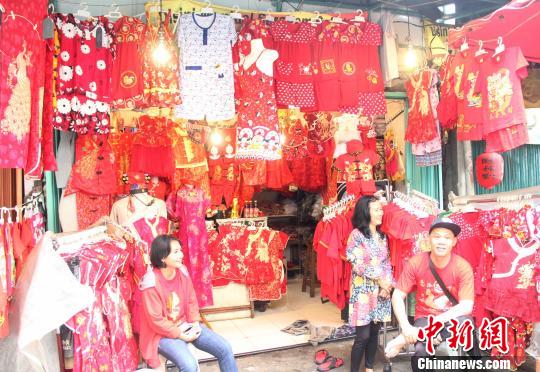 上午的一場小雨,讓位于雅加達(dá)北區(qū)班芝蘭唐人街的路面變得有些泥濘。臨街小巷的攤點,都拉上了遮雨的油毛氈,一些用小推車擺著的售賣紅包等小件物品的流動攤點,只能臨時用塑料布將小貨攤包得嚴(yán)嚴(yán)實實。