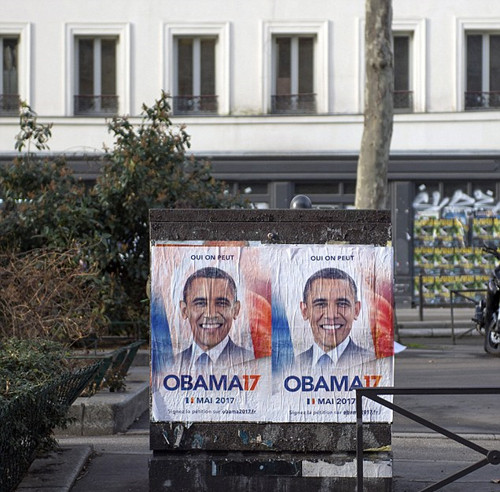 國際在線專稿:據(jù)英國《每日郵報》2月26日報道,法國總統(tǒng)大選將于4月份舉行第一輪投票。近日,一個名為obama17的組織卻在巴黎街頭大量張貼印有奧巴馬頭像的競選海報,并表示已經(jīng)發(fā)起請愿,要求奧巴馬來競選法國總統(tǒng)。