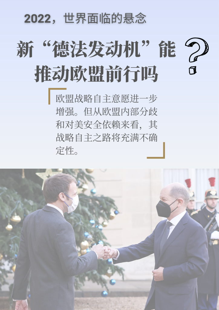 新的一年,懸念仍多:新冠疫情會走向終結嗎?全球經濟能回歸常態嗎?俄西關系會繼續惡化嗎?“德法發動機”能繼續推動歐盟前行嗎?面臨中期選舉、各種問題纏身的美國又會給世界帶來多少新的風險?