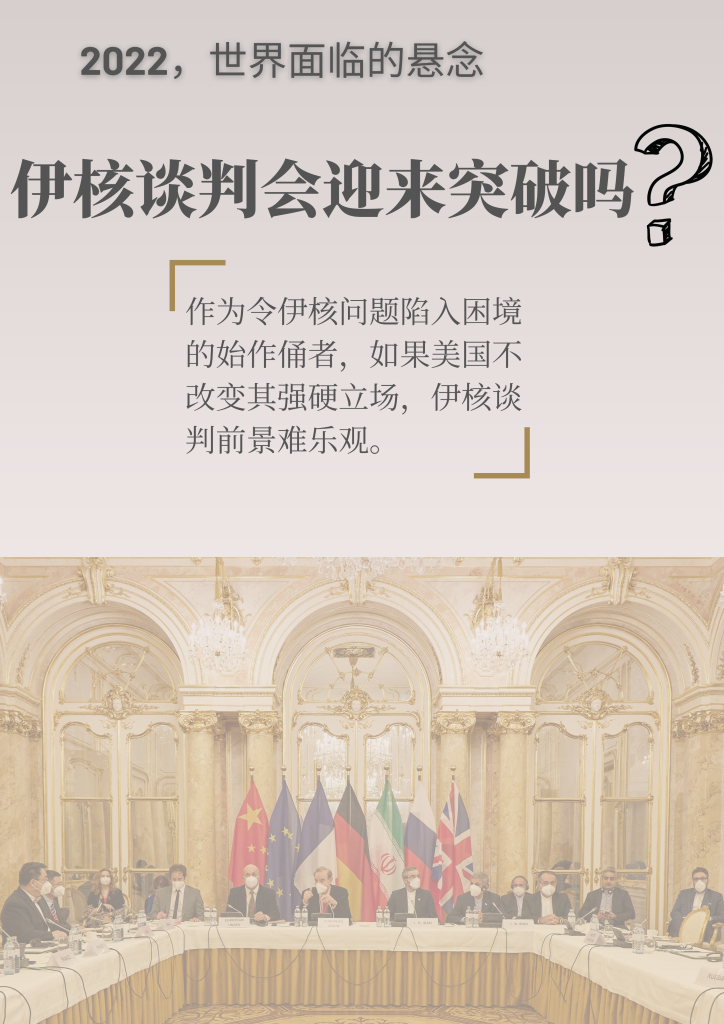 2021年4月開始,伊朗核問題全面協議相關方已完成七輪美伊恢復履約談判,其間歷經伊朗政府換屆以及從6月至11月的5個多月停滯,至今未能取得實質性成果。2022年,這一事關中東地區穩定的談判會繼續拖延,還是會迎來突破?