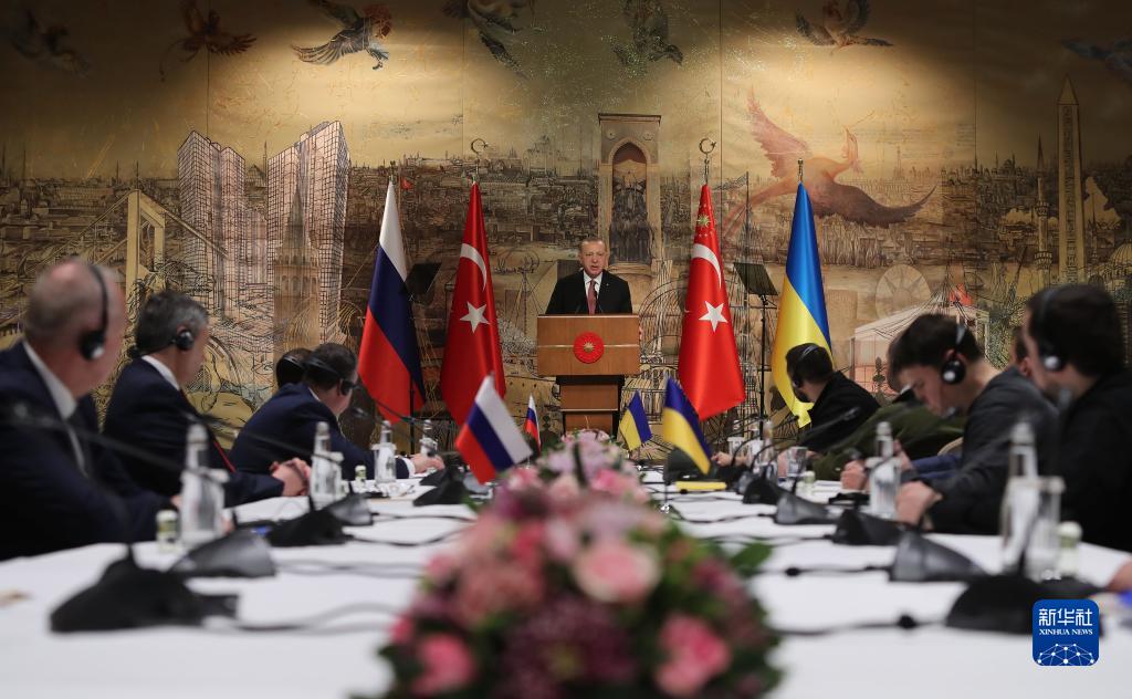 3月29日,俄羅斯和烏克蘭談判代表在土耳其伊斯坦布爾多爾瑪巴赫切宮總統(tǒng)府開啟新一輪談判。土總統(tǒng)埃爾多安在和談開始前會(huì)見了雙方代表并表示愿促成俄烏總統(tǒng)在土?xí)妗?/p>