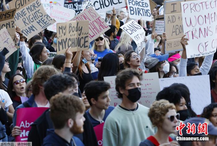 當?shù)貢r間6月24日,美國聯(lián)邦最高法院推翻確立墮胎權(quán)的判例“羅訴韋德案”后,美國民眾舉行抗議活動。