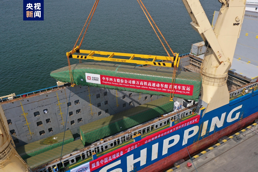 8月21日,我國出口印尼用于雅萬高鐵的1組高速動車組和1組綜合檢測列車在青島港順利完成裝船,通過海運(yùn)發(fā)往印尼。這是雅萬高鐵首批發(fā)運(yùn)列車,標(biāo)志著我國首次出口國外的高鐵列車正式啟運(yùn)。