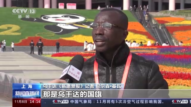 來自烏干達《新愿景報》的記者尼爾森·基瓦是第一次來到中國,當他看到自己國家的國旗在進博會廣場迎風飄揚的時候,激動不已。