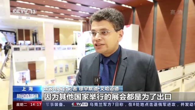 埃及電視臺記者 穆罕默德?艾哈邁德:在中國這是我第一次看到以進口為主題博覽會,因為其他國家舉行的展會都是為了出口。今天,中國打開了大門,與世界共享發展。各國在這里彼此交流合作和發展的經驗,像中國這樣的大國能夠做這樣的事情,簡直太棒了。