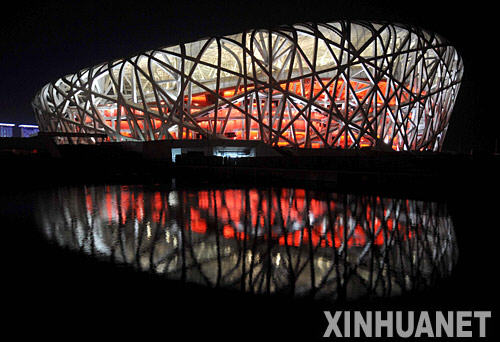 3月3日,國家體育場(“鳥巢”)燈火輝煌。當日,北京2008年奧運會主場館――國家體育場全面試燈。 新華社記者羅曉光攝