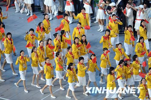 8月8日,第29屆夏季奧林匹克運動會在北京國家體育場隆重開幕。這是中國代表團入場。新華社記者郭大岳攝