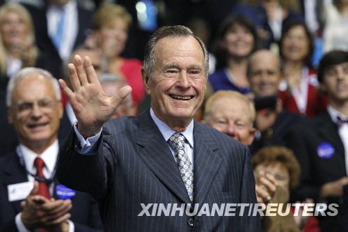 9月2日,美國前總統老布什在明尼蘇達州首府圣保羅出席共和黨全國代表大會時向人群致意。新華社/路透