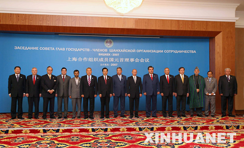 資料圖片:8月16日,在比什凱克出席上海合作組織峰會的國家主席胡錦濤同與會其他國家和有關國際組織領導人合影。 新華社記者饒愛民攝