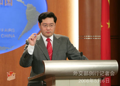 2008年5月6日,外交部發言人秦剛舉行例行記者會,就胡錦濤主席訪日、中央有關部門負責人與達賴方面的接觸、伊朗核問題等回答了記者提問。