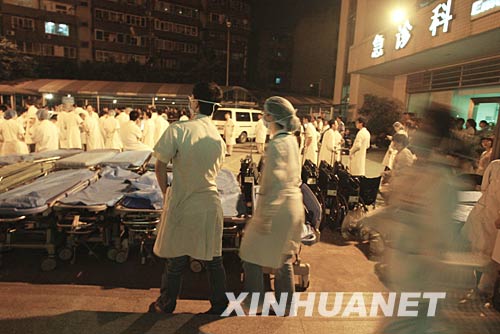 資料圖片:5月14日,華西醫院的醫護人員時刻準備著迎接被送進醫院的災區傷員。截至當日22時,成都華西醫院共接收各地受災病人663人,14日當天共接收受災病人322人,其中震中汶川病人162人。 新華社記者 鄭悅 攝