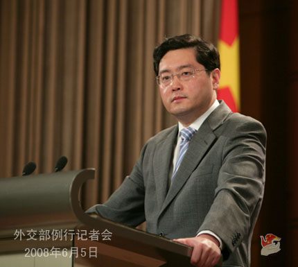 2008年6月5日下午,外交部發言人秦剛舉行例行記者會,就習近平副主席出訪、朝核、伊朗核、達爾富爾等問題答問。