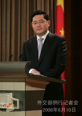 2008年6月10日,外交部發(fā)言人秦剛舉行例行記者會(huì),就聯(lián)合國(guó)秘書長(zhǎng)潘基文將訪華、朝日將舉行雙邊會(huì)談、蘇丹副總統(tǒng)塔哈訪華等問題回答了記者提問。