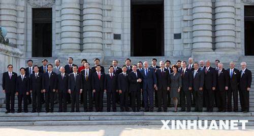 6月18日,第四次中美戰(zhàn)略經(jīng)濟(jì)對(duì)話在美國安納波利斯閉幕。這是出席第四次中美戰(zhàn)略經(jīng)濟(jì)對(duì)話的中美雙方代表在閉幕會(huì)前合影。 新華社記者 姚大偉 攝