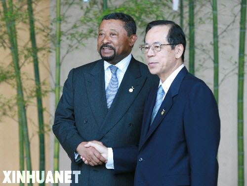 7月7日,日本首相福田康夫(右)在北海道洞爺湖舉行儀式,歡迎前來出席八國峰會的加蓬副總理兼外長、非洲聯(lián)盟委員會主席讓·平。當(dāng)日,八國集團(tuán)領(lǐng)導(dǎo)人同非洲7國和非盟領(lǐng)導(dǎo)人對話會在日本洞爺湖舉行,標(biāo)志著一年一度的八國峰會正式開幕。 新華社記者任正來攝