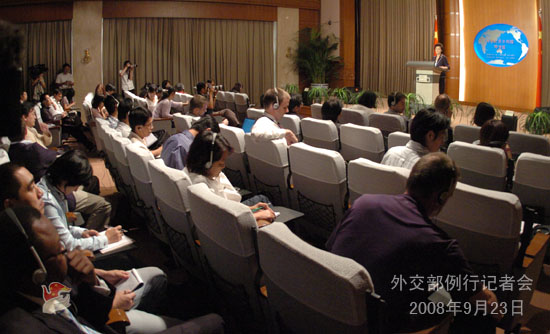 2008年9月23日,外交部發言人姜瑜舉行例行記者會,就中日關系、查韋斯總統訪華、朝核問題、三鹿奶粉安全事故等回答了記者提問。