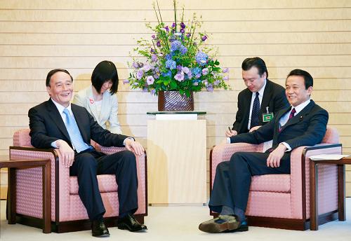 中國外交部部長楊潔篪、國家發(fā)展和改革委員會(huì)主任張平、商務(wù)部部長陳德銘、中國駐日本大使崔天凱等參加會(huì)見。王岐山當(dāng)天還在日本經(jīng)團(tuán)聯(lián)會(huì)館與日本經(jīng)濟(jì)界代表進(jìn)行了座談。