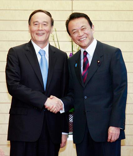 6月8日,日本首相麻生太郎(右)在東京首相官邸會(huì)見出席第二次中日經(jīng)濟(jì)高層對話的中國國務(wù)院副總理王岐山。新華社記者 任正來 攝