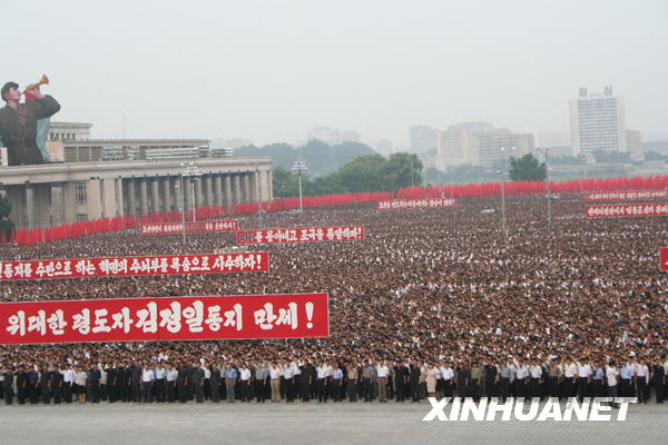 6月25日,在朝鮮戰爭爆發59周年之際,近10萬名平壤市民在金日成廣場舉行大規模反美群眾集會。1950年6月25日朝鮮戰爭爆發。朝鮮把這一天定為“反美斗爭日”。新華社記者 高浩榮 攝