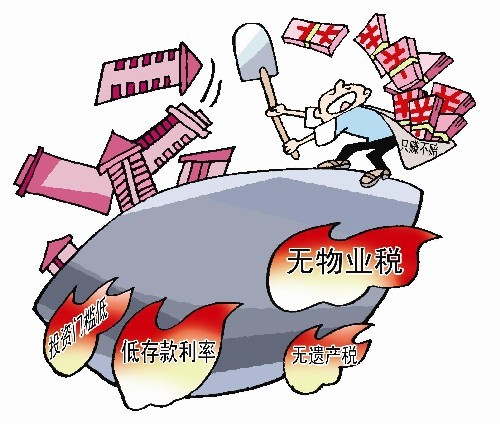 新聞背景:資金充沛、四面出擊的“炒房團”,被認為是房價持續上漲的推手之一。據了解,近年來,特別是國際金融危機爆發以來,我國各地節節攀升的房價,已讓部分“炒房”者產生了房價“只漲不跌”“買房只賺不賠”“政府對房價調低不調高”等心理,投資信心很足。部分“炒房”者認為,我國人多地少、城市化加速的國情,決定了住房是稀缺資源。特別是在無物業稅、遺產稅等稅種支出,以及... 中新社發 司海英 攝