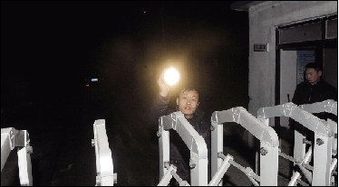 養(yǎng)牛場已被封鎖,安保人員嚴加防范。記者 朱嘉磊 攝