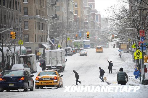 紐約市部分地區(qū)26日中午時(shí)分積雪厚度超過53厘米,預(yù)計(jì)降雪還將繼續(xù)。