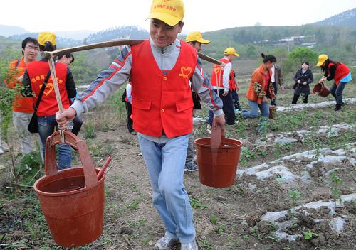 3月29日,廣西柳州市鹿寨縣的青年志愿者擔水準備灌溉土地。當日,廣西柳州市鹿寨縣團委組織一批青年志愿者,來到該縣導江鄉古懂村龍坪屯,幫助農民運水灌溉農田,為抗旱保春耕做貢獻。新華社發(賴柳生 攝)