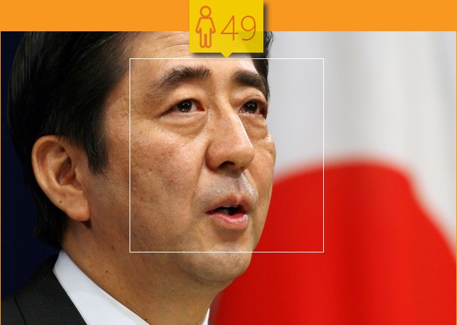 照片時間:2006年。2006年9月20日,日本執政的自民黨舉行總裁選舉,51歲的安倍晉三當選,當年12月當選日本首相!邦価g”測試給出的結果是49歲,基本吻合。