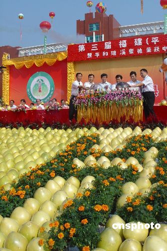 中新社漳州十月十八日電 (沈逸亭 張碧升)金秋十月,柚果飄香。十八日上午,以“綠色、品牌、富民”為主題的第三屆福建(平和)琯溪蜜柚節,由當地官員啟動按紐,在“中國琯溪蜜柚之鄉”平和縣開幕。
