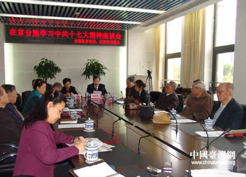 昨日,60余位在京臺胞聚首座談,熱議十七大報告,暢談十六大以來的兩岸發展成果與胡錦濤總書記十七大報告中解決臺灣問題的論述。